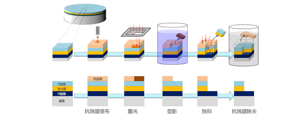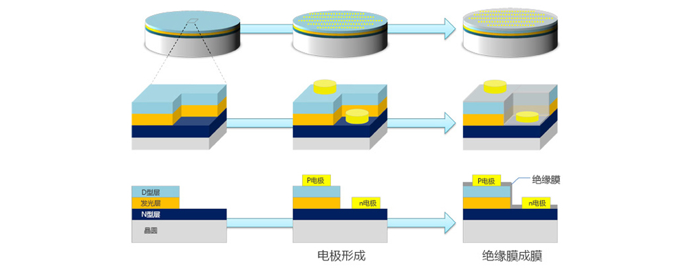 這個(gè)過程是制造LED的核心過程。2014年的藍(lán)色LED研究獲得了諾貝爾獎(jiǎng),之所以獲獎(jiǎng)是因?yàn)榻?jīng)此過程,LED的質(zhì)量得到了顯著改善,使得制造實(shí)用藍(lán)色LED成為可能。獲獎(jiǎng)的原因之一是,正如這里所提到的,通過采用一種稱為雙流法的方法,用兩種原料氣體以供晶體生長,因此制造出更優(yōu)質(zhì)的晶體。此外,p型層的激活,低溫緩沖層等LED的晶體生長膜方法,在許多技術(shù)的積累之上實(shí)現(xiàn)了制造出本世紀(jì)的藍(lán)光LED。